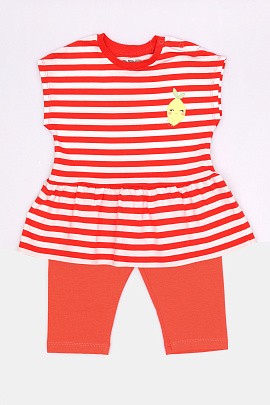 Комплект для девочки (платье модель "туника", бриджи) коралловый