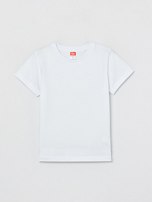 Футболка детская с коротким рукавом. Вырез горловины круглый, обработан притачной бейкой из рибаны с эластаном.