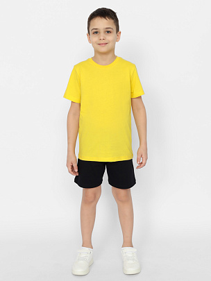 Футболка детская с коротким рукавом. Вырез горловины круглый, обработан притачной бейкой из рибаны с эластаном.