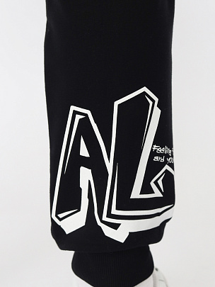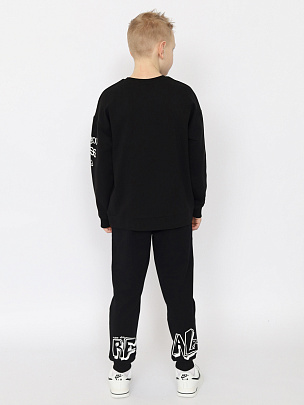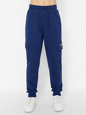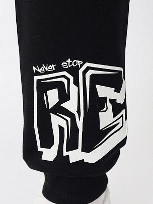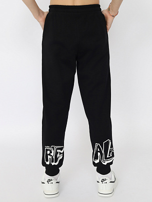 Брюки с притачным поясом и манжетами. Пояс из основного полотна и эластичной резинкой внутри. Низ брюк с притачными манжетами из полотна с добавлением лайкры. Задняя часть декорирована принтом "Реальный".