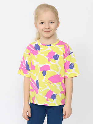 Футболка для девочки с трендовым колледж-принтом, с блестящим эффектом и контрастными бейками по горловине и рукавам. Модель сделана из 100%-хлопкового трикотажа. Материал приятно прилегает к телу, не сковывает движения и позволяет коже дышать.