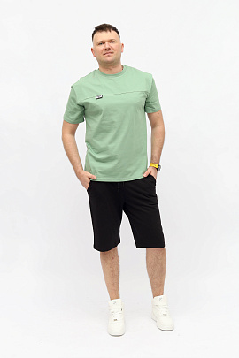 Футболка прямого силуэта длиной до бедер из кулирки повышенной плотности. Короткий рукав. Круглая горловина обработана узкой притачной обтачкой из рибаны с эластаном. Полочка декорирована текстильной этикеткой. Спинка декорирована принтом "что?".