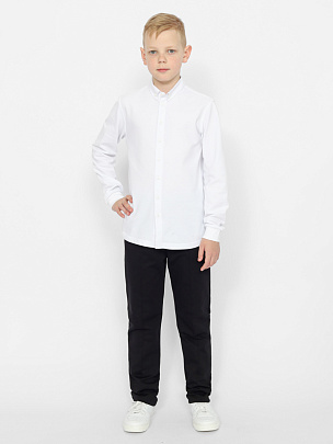 Рубашка классическая, полуприталенного силуэта, с длинным рукавом рубашечного покроя, с притачными манжетами, с застегивающейся шлицей рукава. Воротник обтачной с притачной стойкой. На центральной застежке расположена декоративная вставка в виде галстука.