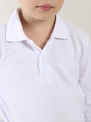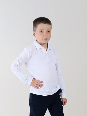Рубашка-поло для мальчика. Рукава с манжетами. Модель с длинными рукавами и отложным воротником. Спереди застежка на пуговицы.