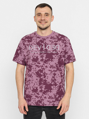 Футболка с короткими рукавами. Горловина круглая, обработана притачной бейкой из рибаны с эластаном. Перед футболки декорирован принтом.